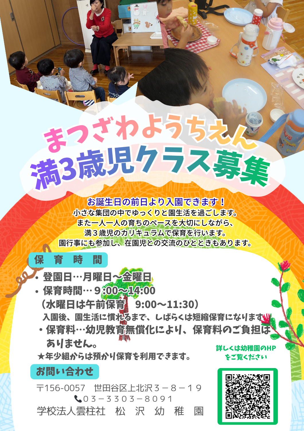 松沢幼稚園は、キリスト教に基づいて幼児を保育いたします。